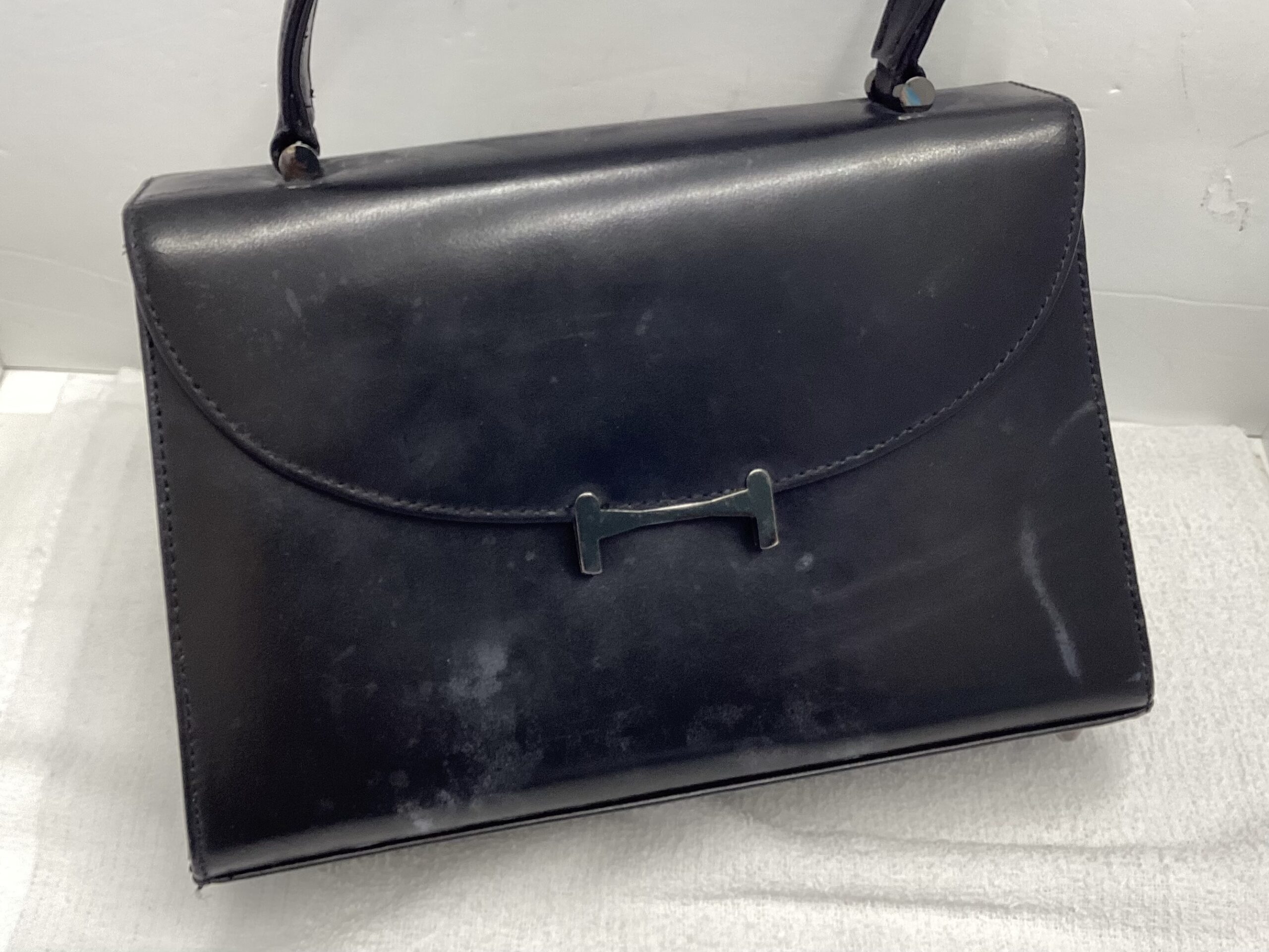 「フォーマル革バッグの汚れ?」クリーニングします!