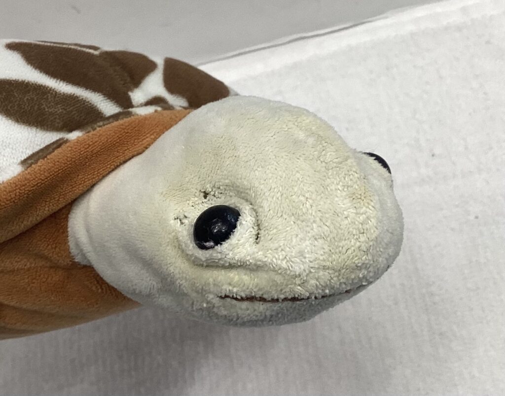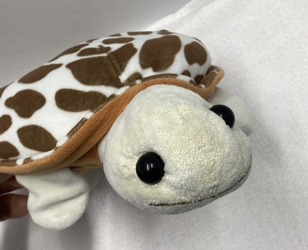 今回、長与町より可愛い男の子の大切なカメさんヌイグルミの修理とクリーニングでお預かりしました