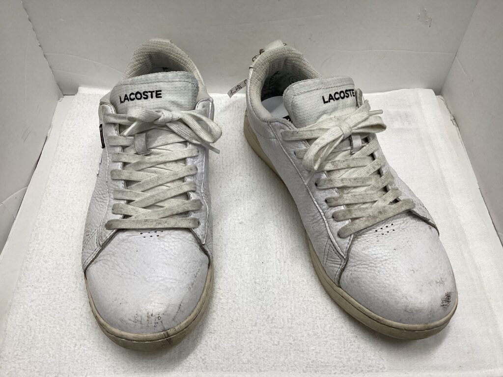 今回、県外より汚れてしまった白い革スニーカーのご依頼です