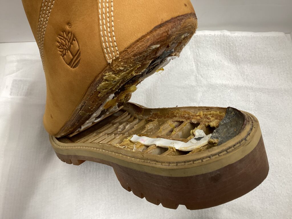 今回、長与町よりご依頼のブーツ底がハガレてしまって